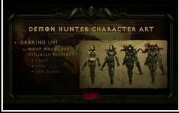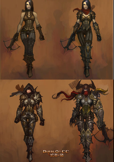 恶魔猎手的诞生 设计师们决定回到原点去寻找更多的概念,思考游戏中到底需要什么样的角色。由于已经公布了武僧,所以现在似乎需要一个有些站在黑暗面的职业。而且要有些神秘,更加中世纪一点,哥特一点。当然最重要还是远程特点,所以最终诞生了恶魔猎手。