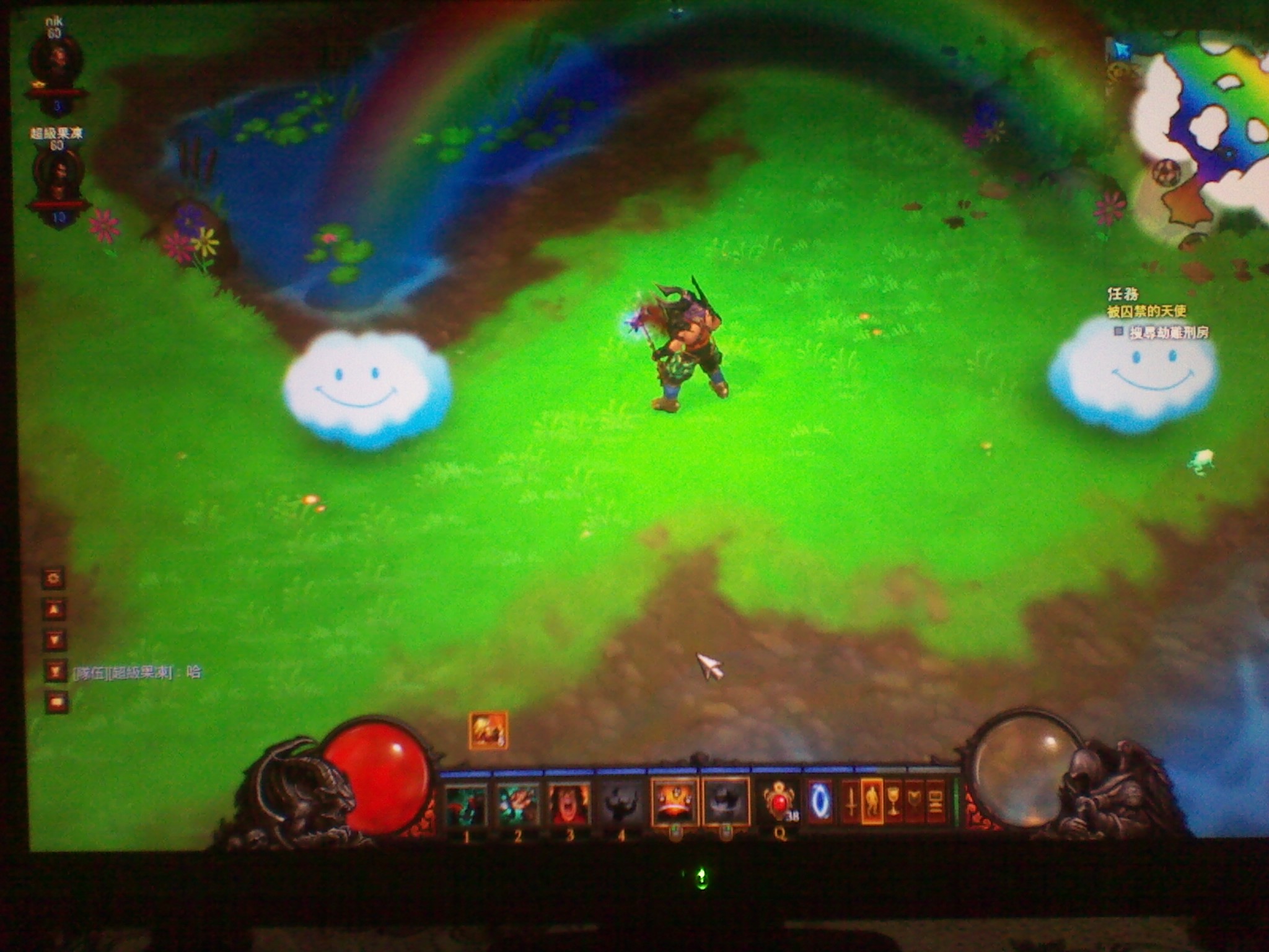 昨天得到一位台湾朋友的帮助,到暗黑3里的Q版彩虹隐藏关(地狱)观光了一把。真是不得不佩服暴雪的创意,长时间戮战在可怕的怪物中,进到这里突然眼前一亮,Q版的,太萌了,给白云挠痒痒掉G,有意思!