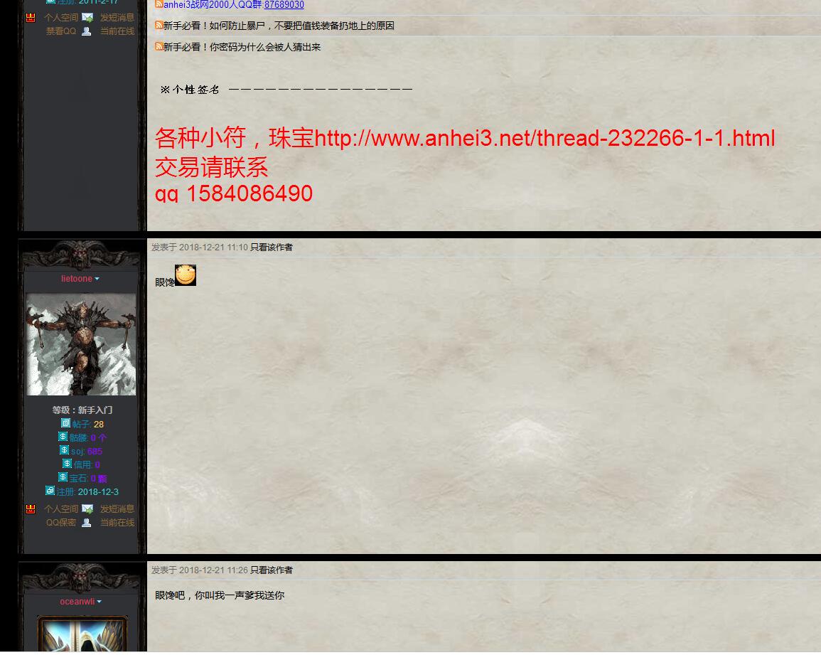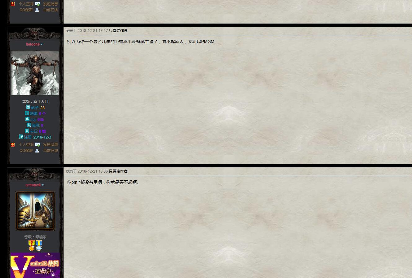 我不知道现在战网的部分老玩家素质这么低下,发交易帖子,在回复里直接侮辱新人,当然我也有语言反击,但对方还一直语言侮辱!