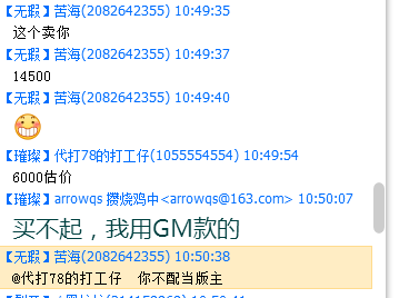 今天起因苦海卖16-19-10的毁灭,长毛估价6000,苦海说他不配当版主