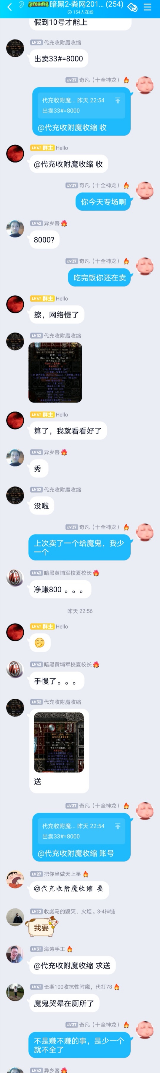 昨晚18区估价版版主野蛮粉丝在交易群里甩卖收缩戒指和冥府乌鸦,这些货太大了,咱接不住,也就只能看看,刚好看到33符文8000soj甩。巧合的是我前几天无聊多事,卖掉了一个33,正好就缺这么一个,于是@他要收。还有几个想收的,只是手慢了,发消息的时间比我晚。我就美滋滋的要账号转账交易,哪曾想不管是私聊消息还是群里@他的消息都是没有回复。不回复可能是忙吧,但又怎么一直在群里发图送东西?过了二十分钟,他才在群里发一句“33#早卖掉了”,而且不是@我的。