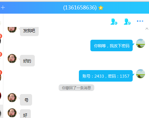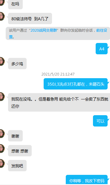 向我购买一个80级的法师,说以后等卖了东西再给我烧鸡。我信了,给了账号密码,然后过几天QQ发消息就一直没理我。最后一张图是对方的QQ号。