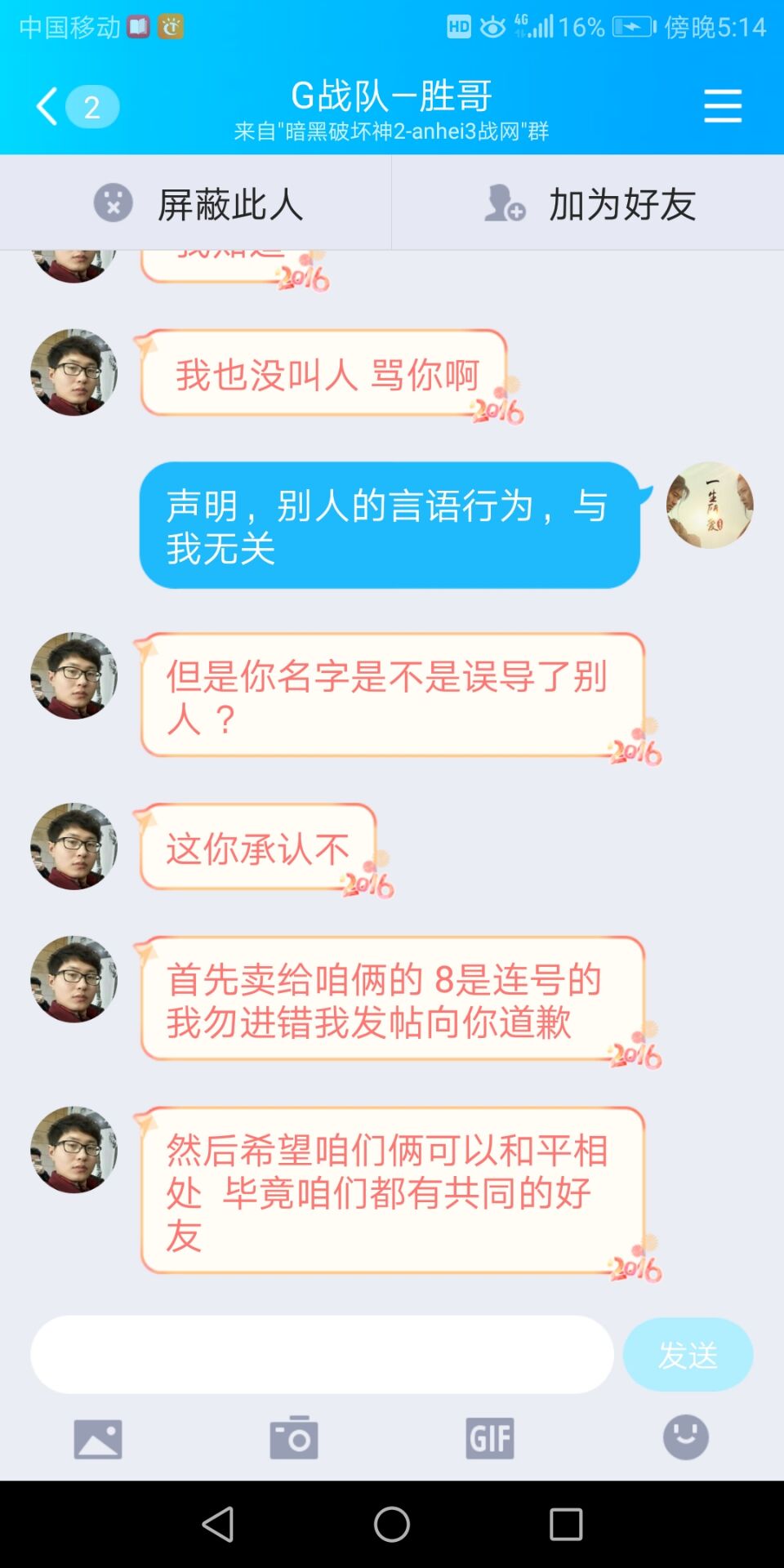 在胜发的前个帖子里 他说可以向你道歉 消除影响  你可能觉得他没诚意什么的  不愿意接受 是不是呢  自己不愿意退一步或者表个态  胜已表示愿意道歉  你想别人还怎么样  换谁受得了一年在大群里被天天嚼舌根