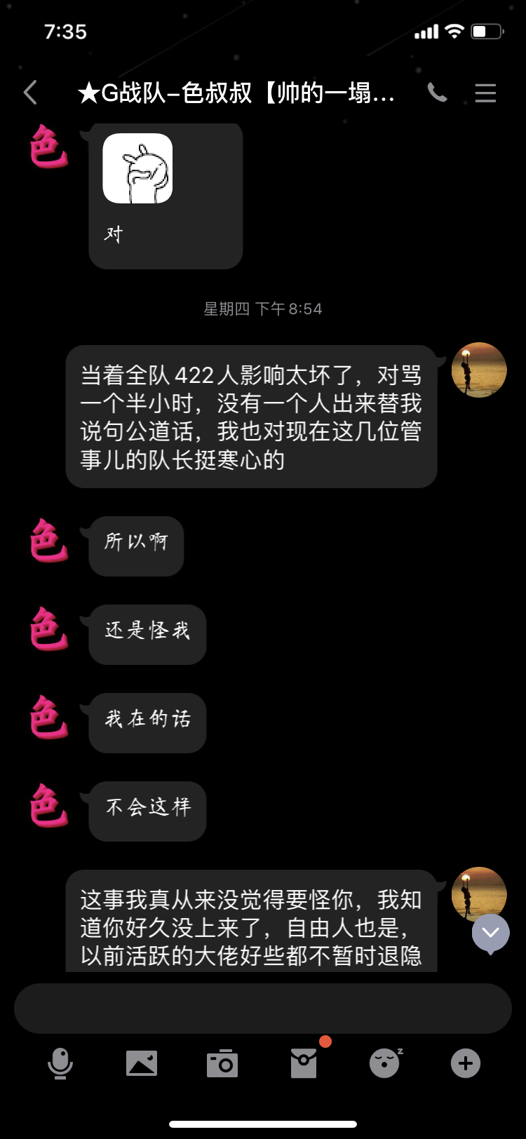 4号的事情详细看我之前的发帖:G队G队队友看过来,下午我和队长单飞群里对骂一小时多始末。http://bbs.anhei2.com/thread-470617-1-1.html