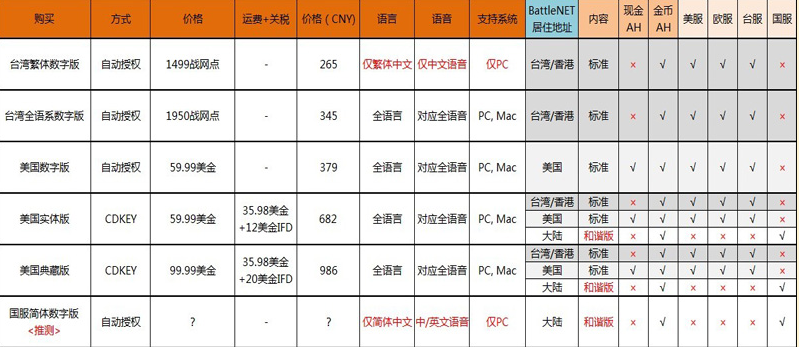国服部分是根据WOW现状个人推测国服D3发售时的情况,但目前还没有任何要发售的迹象。