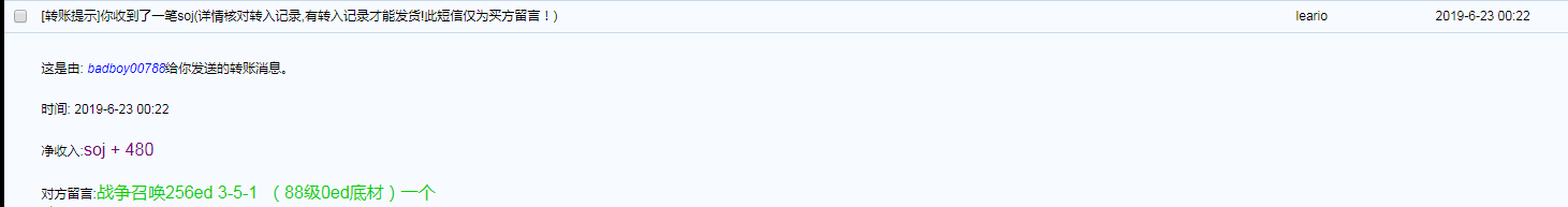 Re: [转账提示]你收到了一笔soj(详情核对转入记录,有转入记录才能发货!此短信仅为 ...        gsk384026446        2019-6-20 00:10