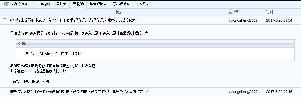 3.取消交易的理由:转SOJ时间为论坛时间6月9日8点9分