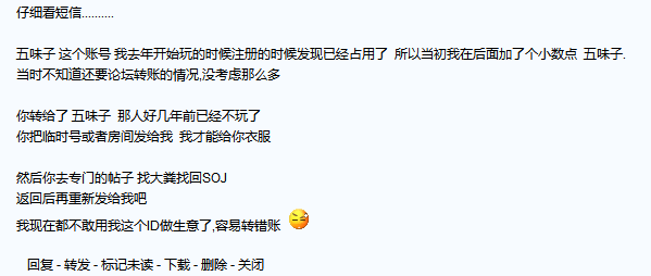 今天买装备,转账转错了,申请退还soj.