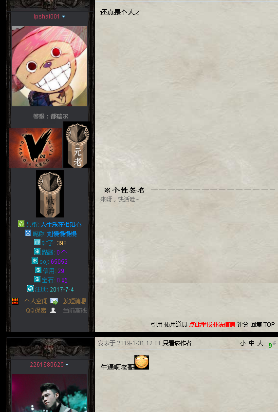 单就发帖本身来说,我不知道还有没有其他恩怨在。楼主的东西确实无意义,版主减信用还有就是因为楼主的帖子大宝剑,让开让开。