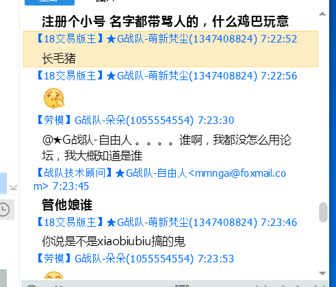 2、像自由人这样的版主,虽贵为18区版主,但是18群里却没有他身影,而在16老群,以前有自由人的身影,但说话极为狂妄引来不少怒骂,也许因此退出了QQ群,其人品,可见一斑了,这种人做版主,真是18区的不幸!
