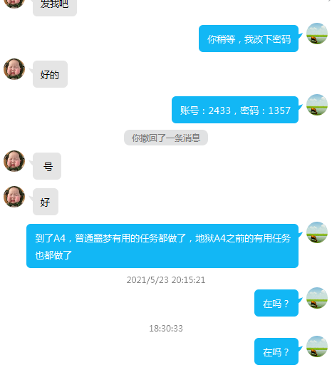 向我购买一个80级的法师,说以后等卖了东西再给我烧鸡。我信了,给了账号密码,然后过几天QQ发消息就一直没理我。最后一张图是对方的QQ号。