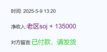 从我的zhouning444账号交易295900烧鸡到我baozou123账号,2024年3月5号,我用20万23拍卖行烧鸡换了1800骷髅,对方把账号baozou123交易给我,我在1573楼备案,今天玩25区因为需要游戏账号绑定论坛,为了将来方便。把2号的骷髅跟烧鸡交易到一起