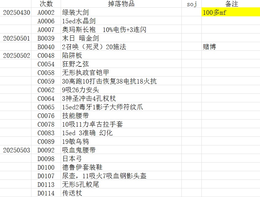 500场所有有价值的装备、符文、珠宝、护身符。捡东西加整理,平均5分钟一场