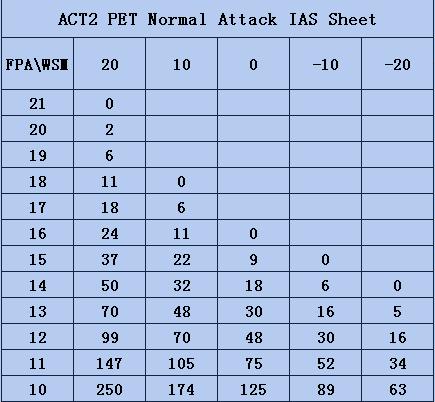 act2pet攻击的速度有两个表,jab和普攻的。不过pet到等级高了以后,jab的使用频率越来越大。比如em防御98级pet,使用jab的频率是175/(175+10+30)=82% 而使用普攻的频率只有 30/(175+10+30)=14% 所以考虑攻击速度的时候主要参考的还是jab。普通攻击的表格可以忽略。