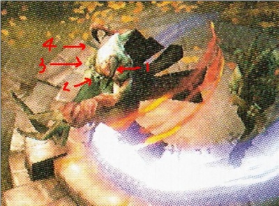 2、这个角色两只胳膊上分别带着(长着)爪。