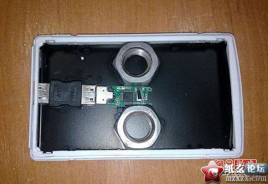 这块移动硬盘竟然是由一个128MB的U盘和两个大螺帽组成,之所以加入大螺帽显然是为了增加重量以让人确认这是块移动硬盘。令人称奇的是这块“移动硬盘”的容量在系统中显示的完全正确,并且据说店家为了向顾客证明这块硬盘是正常工作的,还特意拷贝了两个文件到其上,相信再认真的顾客也难免被欺骗了。