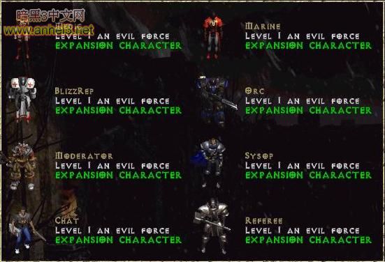 如果你登陆过暗黑破坏神2的bn战网,你可以在不同频道里看到很多奇怪的形象.有的是星际,魔兽里的人物,而以下这些则都是暗黑破坏神2的隐藏人物.