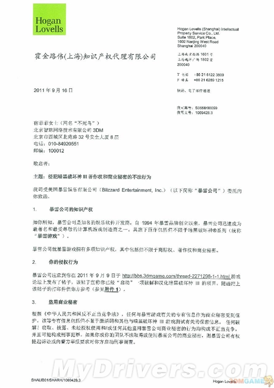 以下为3DM网站声明全文及暴雪律师信扫描件: