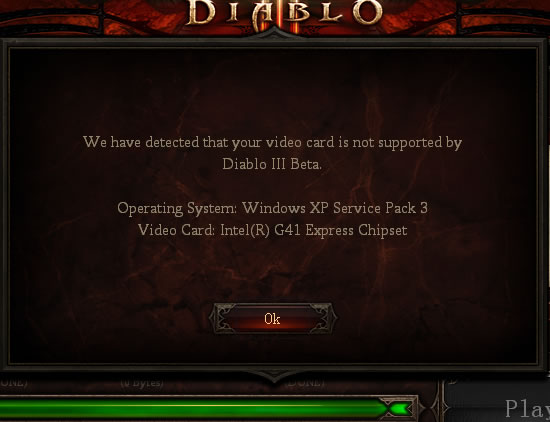 安装完成后会有一个简单的系统提示,包括了操作系统和显卡。暗黑3的硬件要求并不高,所以不用过于担心自己的电脑。当然,推荐配备一个好的音响,环境音乐是在太棒了!