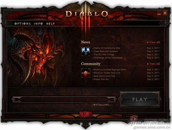 经历完前面的步骤,那么就可以正式进入暗黑破坏神3的世界,当然,你还需要一个拥有测试权限的帐号!启动画面的风格非常完美,还包括最新的游戏信息!