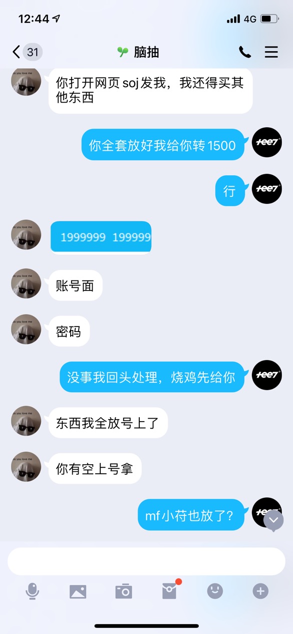 4.内容补充:前一天他购买我整套人物装备,价格讲好7500J,他只有1500J,付给我之后,说他有几个大号符文给朋友了,明天可以要回来,能凑6000J(还是我帮他算的,他自己都不知道值那么多,有30,32和27号),他让我把装备先给他玩,我就给他了,第二天他找我说朋友把符文用掉了,东西买不起了,退给我,让我退烧鸡,他说把东西全部放在一个账号让我去取,我当时大年初一在丈母娘家没法登陆,我就先把1500烧鸡退给他了。但是我晚上回家去去装备的时候发现这个账号和密码是登陆不上去的。麻烦请管理员登陆这个账号取回我的装备。如果装备已经没了,请封号此人以及先至少退还我1500烧鸡(我查了他id刚刚好有我退返的1500烧鸡),此人qq和论坛id一样都是 2859017795 在玩家一群,应该是个新人之前没见过