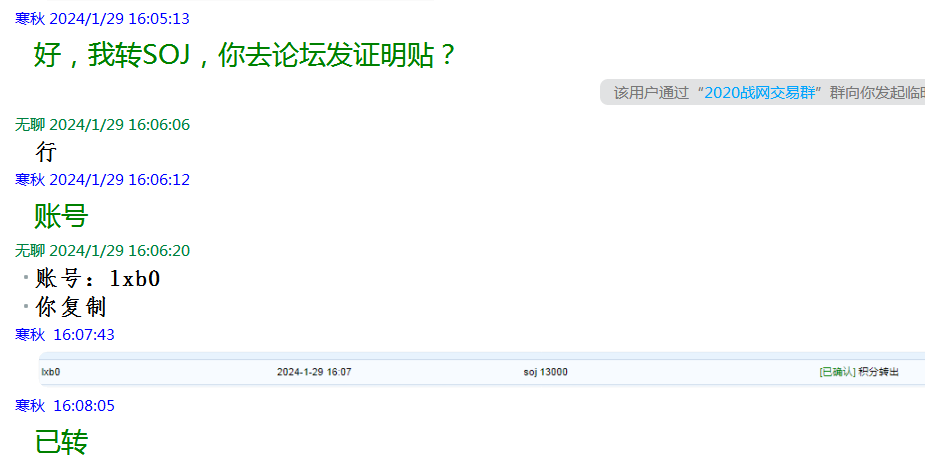 转账给玩家jingq1997的账户4W老区soj