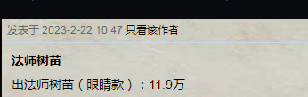 1.13区交易法师树苗,谈价到118666成交,对方论坛留的临时号