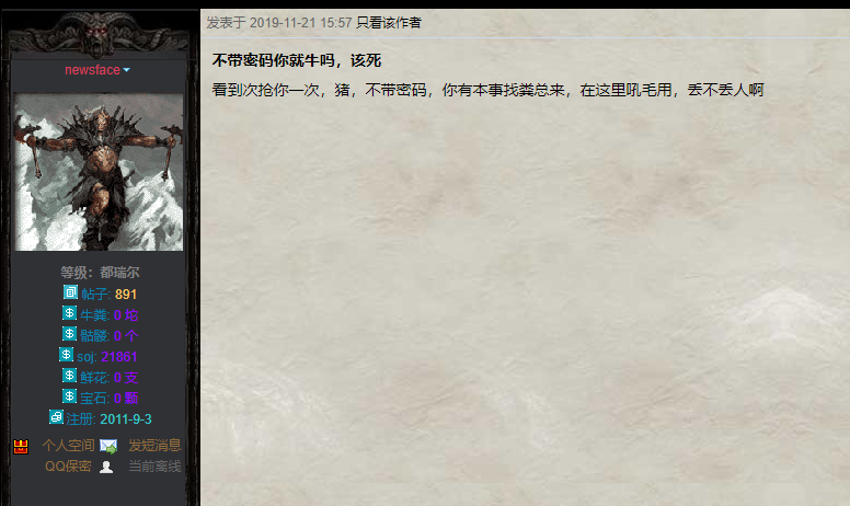 我是一个吃瓜群众,另外我也有这苦主说的小群,聊天记录我刚刚翻了,也截图保存了,不然我就把小群的聊天记录截图出来,唉,我是第一次在游戏发现你这么一个厚颜无耻的人啊,别人收个红八,你突然进去了占位置,我突然好庆幸你进的时候这个八卖给了苦主,这要是这个红八没有卖出去就进去了,祸害一个新人,你万死都死不足惜,另外,你恶意pk和抢人红八抢人物品我也不是第一回听到了,之前那群人没有想着制裁你,是他们善良,纵容了你,你以为作恶就可以善了?不可能