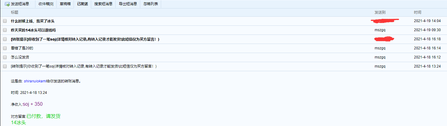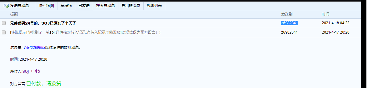 443882178 2021-4-10 01:43 soj 70 [已确认] 积分转出 --